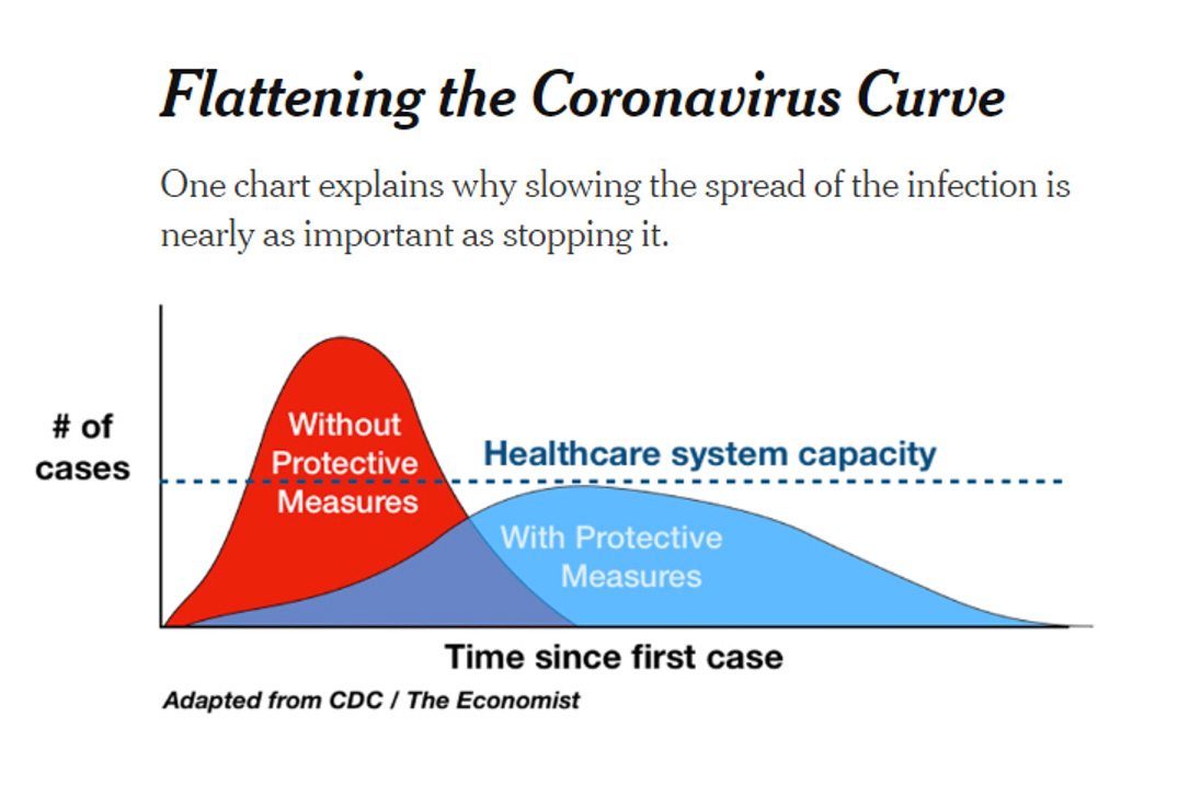 Our goal is to keep the spread of the virus at a manageable rate so our local medical providers can continue to provide the services upon which we all depend. This is called, “Flatten the Curve,” a strategy designed to best manage the spread of the virus for the sake of our entire community. The attachment is a graphical representation of this strategy.