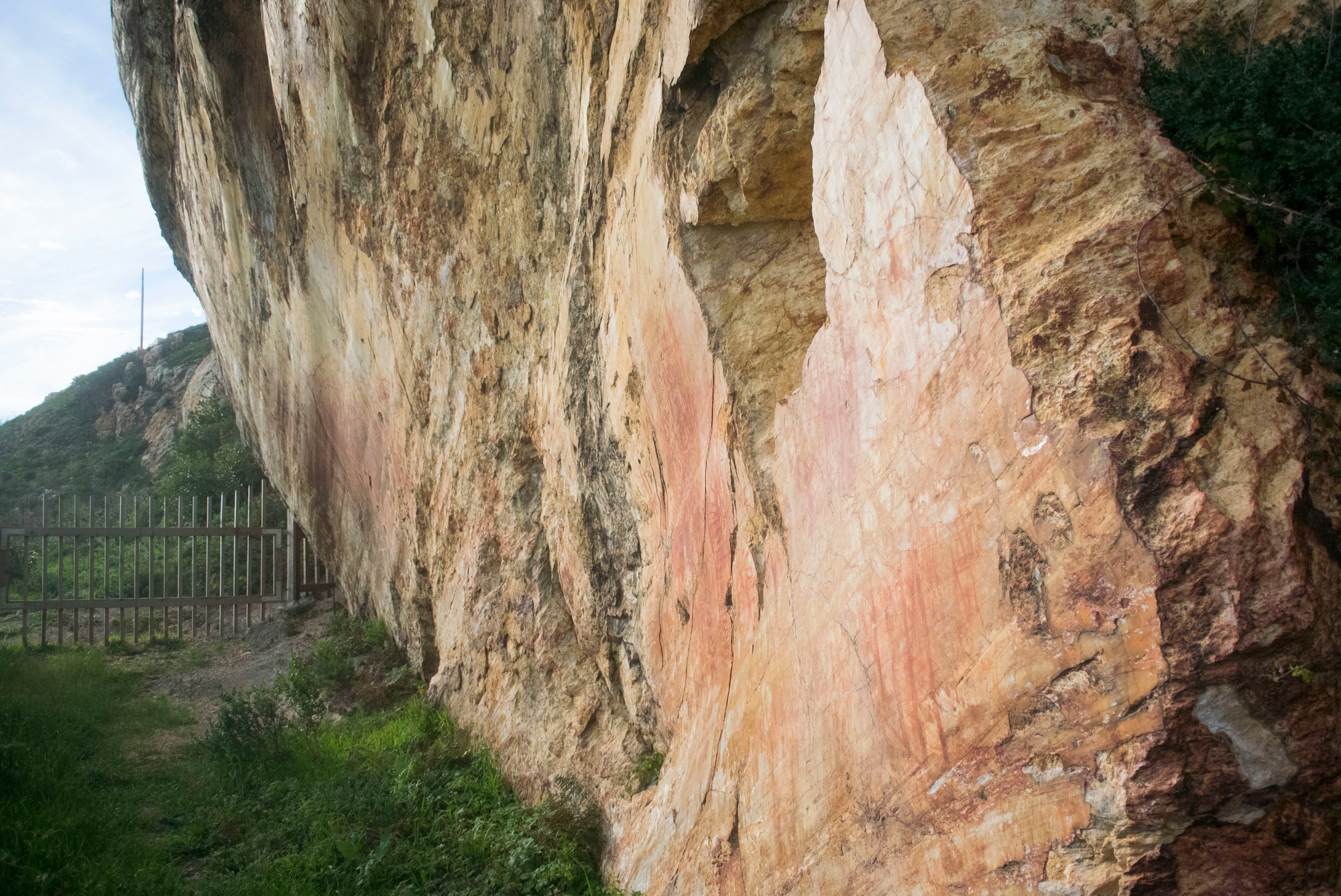 Vandenberg Air Force Base, Calif., protects 14 sacred Chumash Indian rock art sites, dating back 3,500 years. The Honda Ridge rock art site, found on the south portion of Vandenberg AFB, is open to visitors with base access, featuring dramatic views of the Pacific Ocean and Lompoc Valley. Chumash rock art can also be found at the Chumash Painted Cave State Historic Park just north of Santa Barbara.