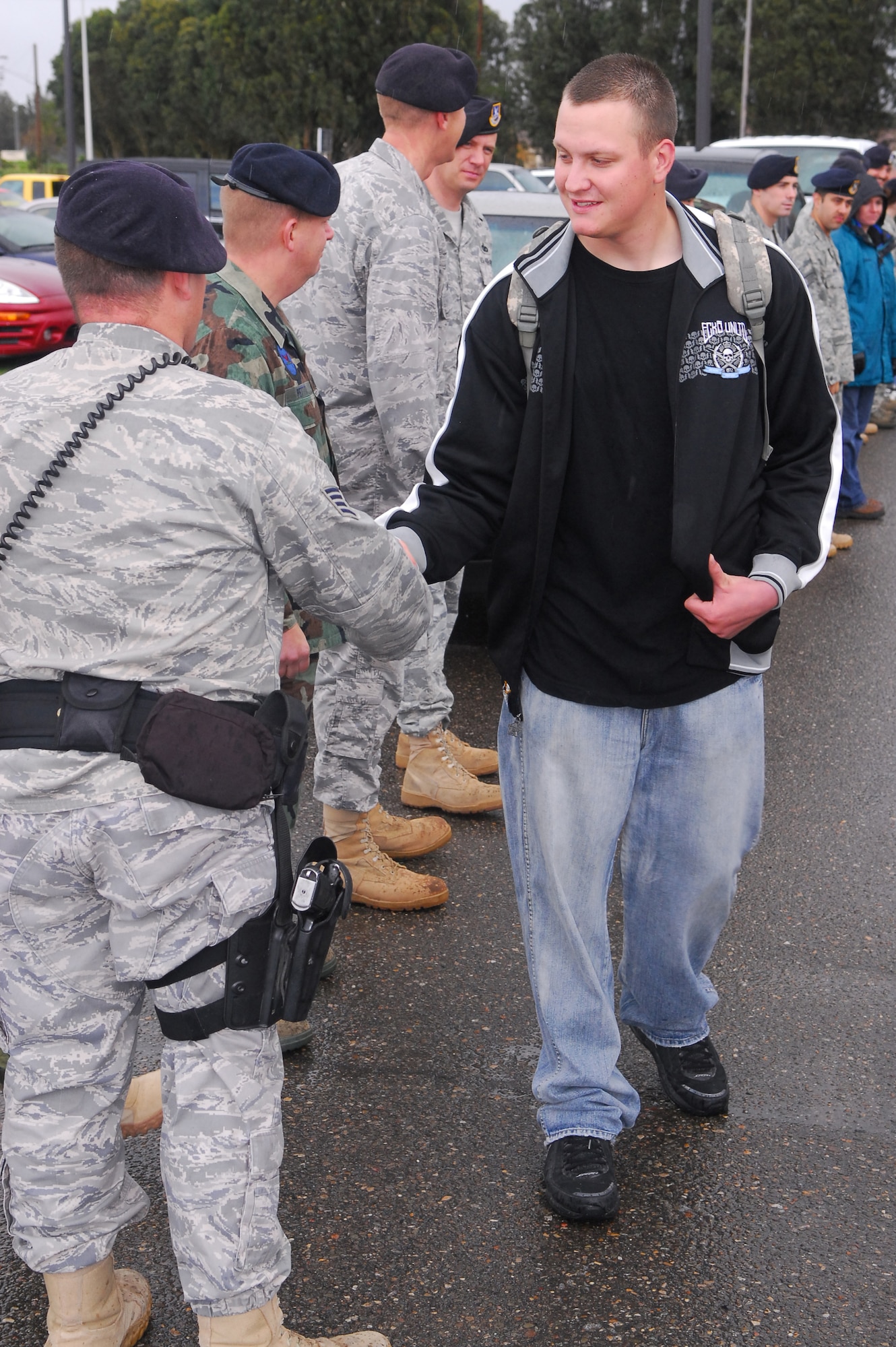 VANDENBERG AIR FORCE BASE, Calif. -- Lt. Col. Joseph Milner, 30th Space Wing Security Forces Squadron commander, motivates his Airmen before they board a bus to depart Vandenberg for a deployment to Iraq Feb. 6.The 30th SFS sent a 13-member team on the six-month deployment. (U.S. Air Force photo/Airman 1st Class Steve Bauer)