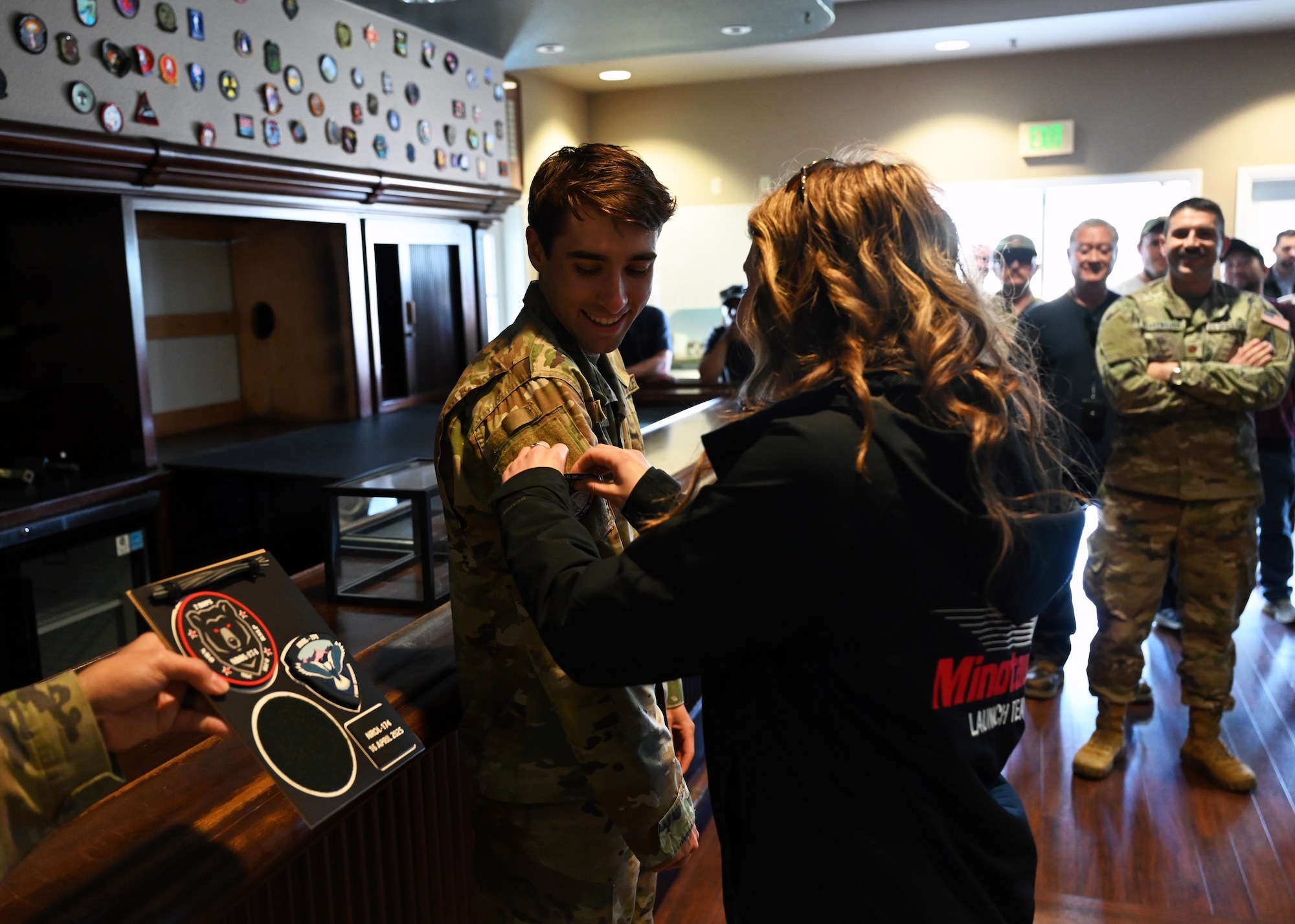 VANDENBERG SPACE FORCE BASE, Calif. -- U.S. Space Force Col. Dorian Hatcher, Space Launch Delta 30 deputy commander, and Laura Robinson, National Reconnaissance Office Office of Space Launch deputy director, led a patching ceremony in the Heritage Room at the Pacific Coast Center to celebrate the NROL-174 launch at Vandenberg Space Force Base, Calif., April 17, 2025. The ceremony honored the mission team’s success, recognized the launch MVP with a commemorative game ball, and added the NROL-174 patch to the Heritage Room wall.