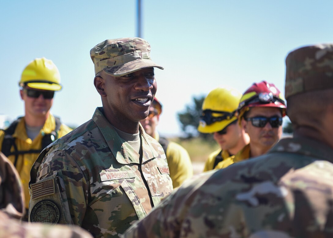 Chief Master Sergeant of the Air Force Kaleth O. Wright visits the 30th Civil Engineer Squadron high voltage pole training yard for a demonstration Sept. 25, 2019, at Vandenberg Air Force Base, Calif. Wright was able to meet with members assigned to the Air Force’s only Hot Shot team and Military Working Horse law enforcement unit, as well as witness them in action. (U.S. Air Force photo by Airmen 1st Class Hanah Abercrombie)